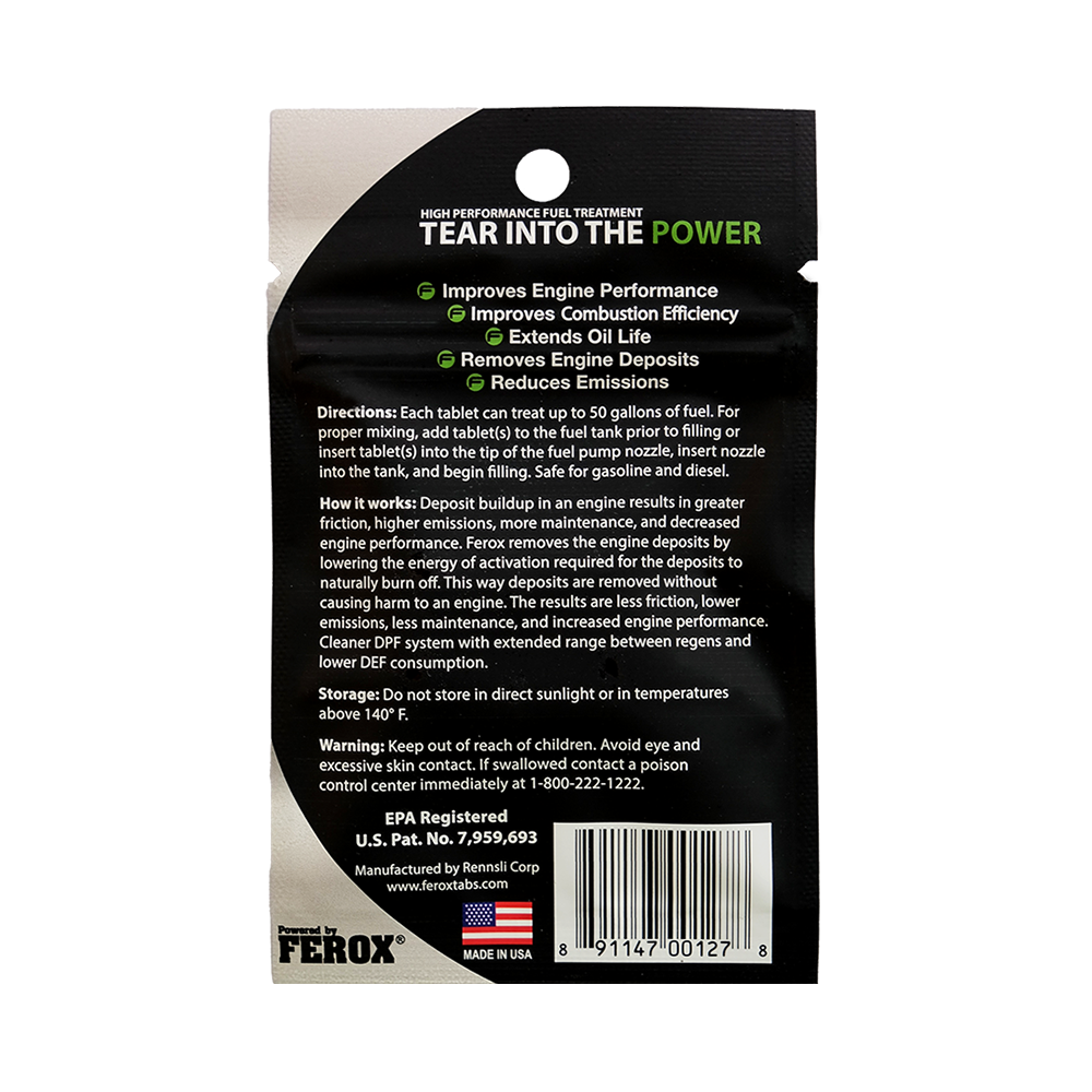 1 顆 Ferox 催化助燃錠可處理 200 公升汽油及柴油